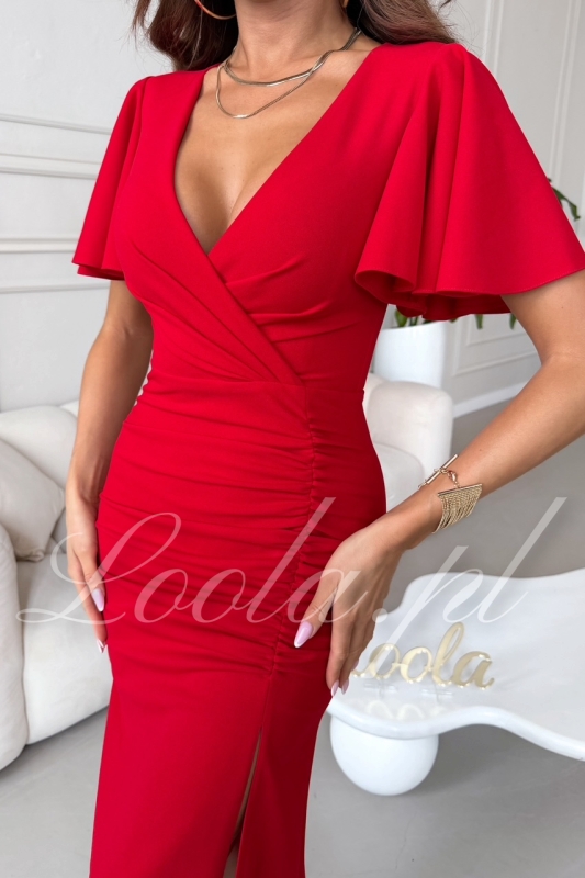 RIO czerwona -  Ołówkowa, błyszcząca sukienka z marszczeniem RIO czerwona - Ołówkowa, błyszcząca sukienka z marszczeniem