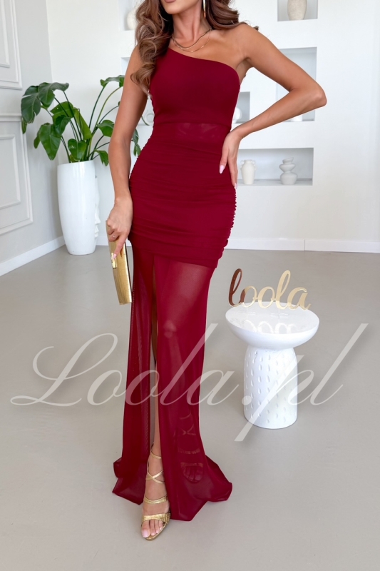 Liliel szałwiowa - Asymetryczna sukienka z falbanką i kopertowym dekoltem