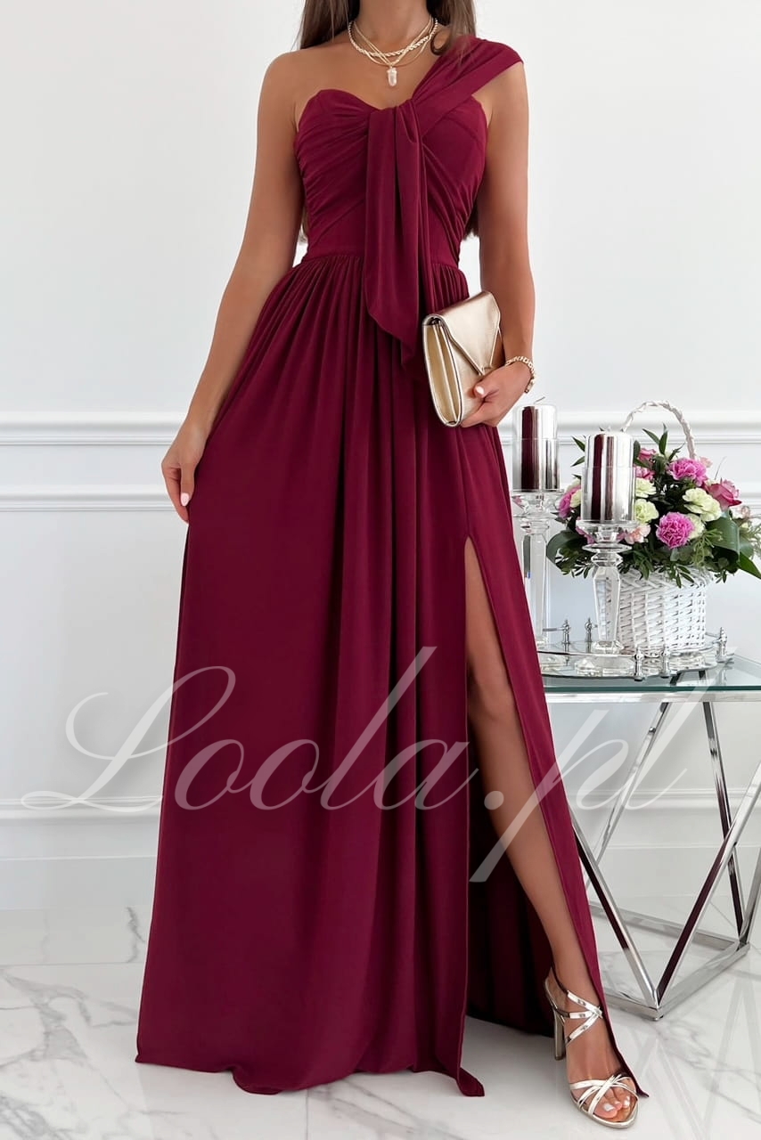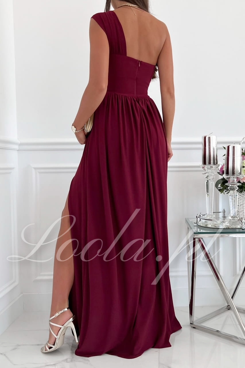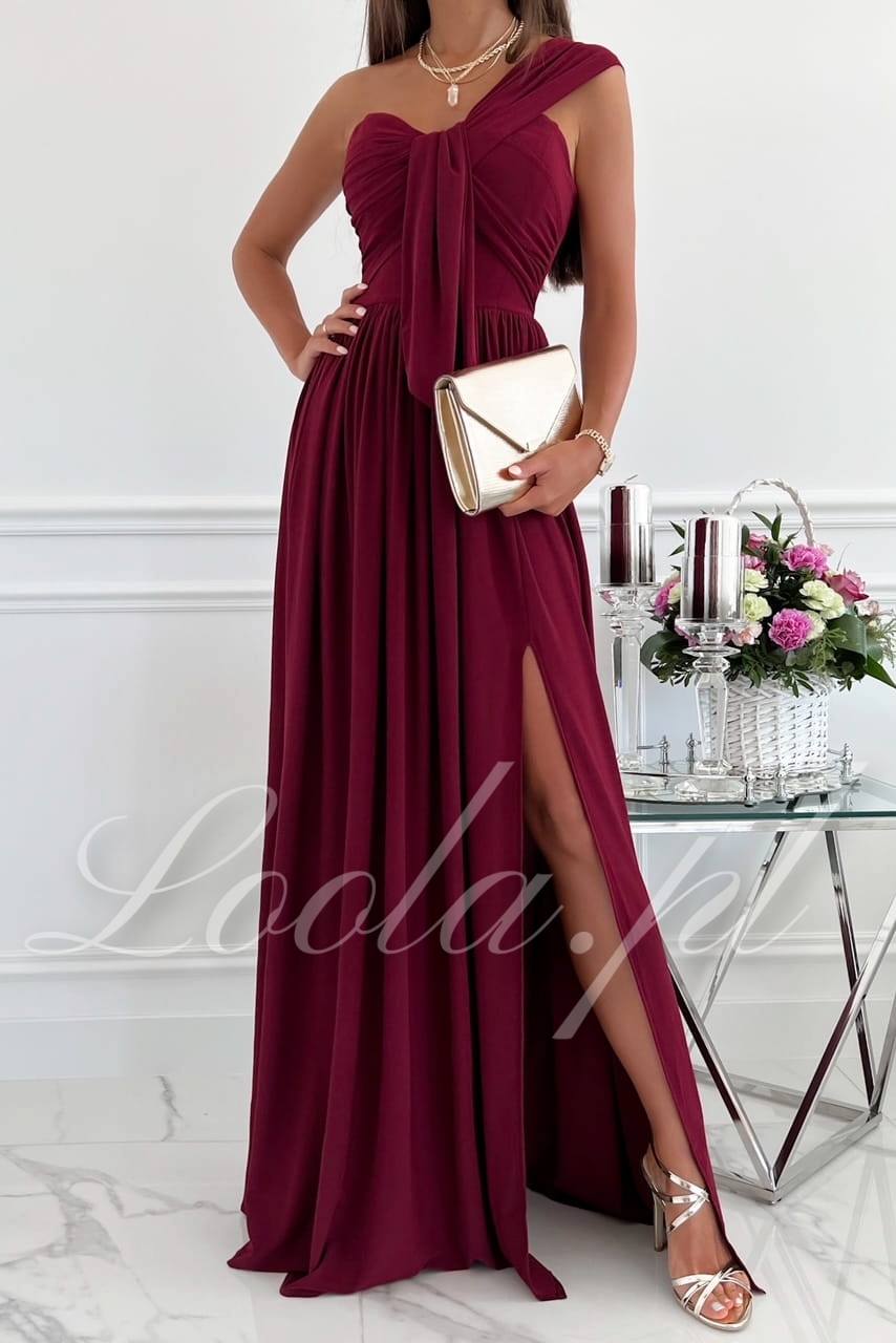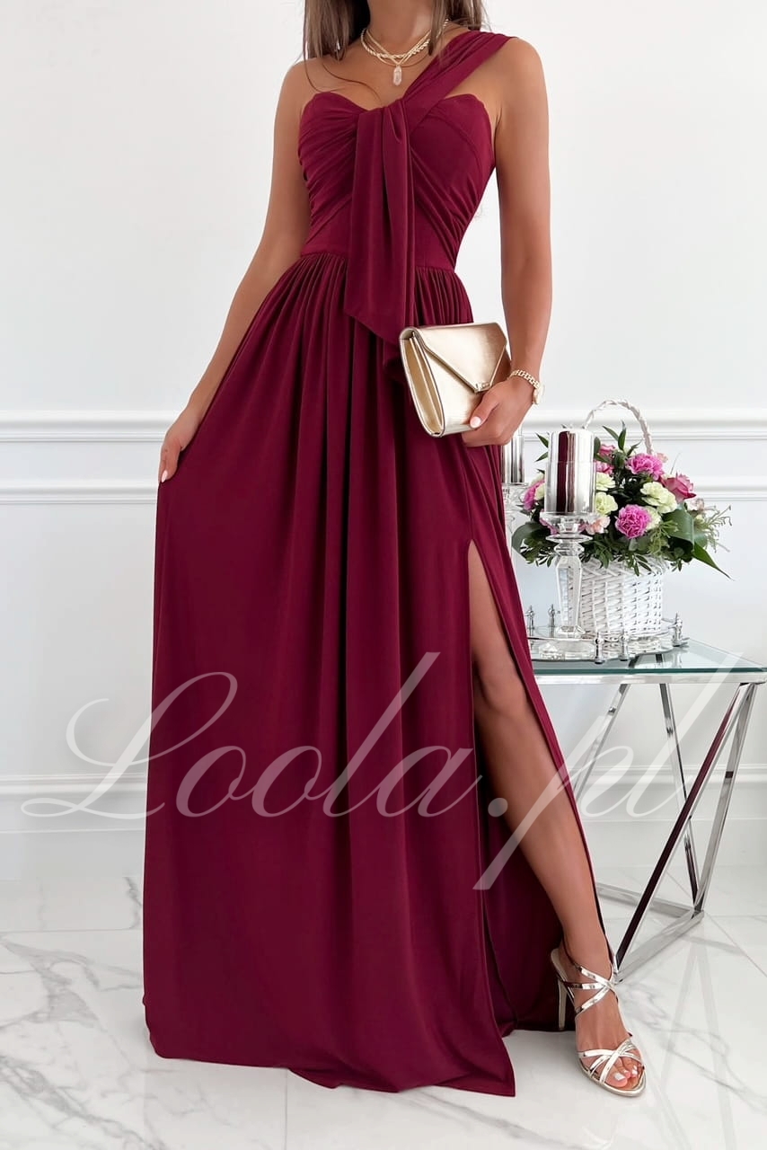 LUANA bordowa - Długa suknia z gorsetem i szarfą